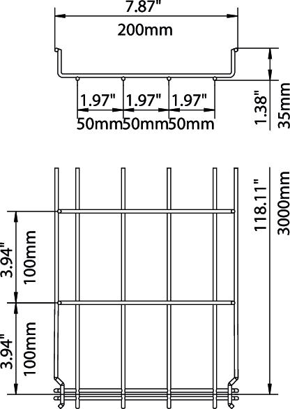 Lankahyllyssä on jatkopää johon hylly liitetään painamalla ilman lisäosia. Hyllyn silmäkoko on 50 x 100 mm (poikkeuksena GRM 55/50 = 20 x 100 mm).