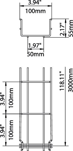 Lankahyllyssä on jatkopää johon hylly liitetään painamalla, joten ei tarvita jatkokappaleita. Hyllyn silmäkoko on 50 x 100 mm (poikkeuksena GRM 55/50 = 20 x 100 mm).