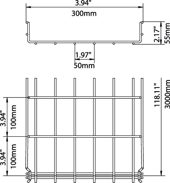 Lankahyllyssä on jatkopää johon hylly liitetään painamalla, joten ei tarvita jatkokappaleita. Hyllyn silmäkoko on 50 x 100 mm (poikkeuksena GRM 55/50 = 20 x 100 mm).