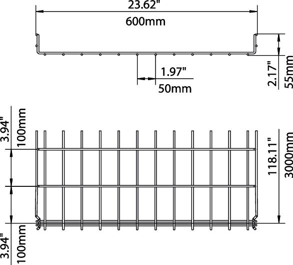 Lankahyllyssä on jatkopää johon hylly liitetään painamalla, joten ei tarvita jatkokappaleita. Hyllyn silmäkoko on 50 x 100 mm (poikkeuksena GRM 55/50 = 20 x 100 mm).