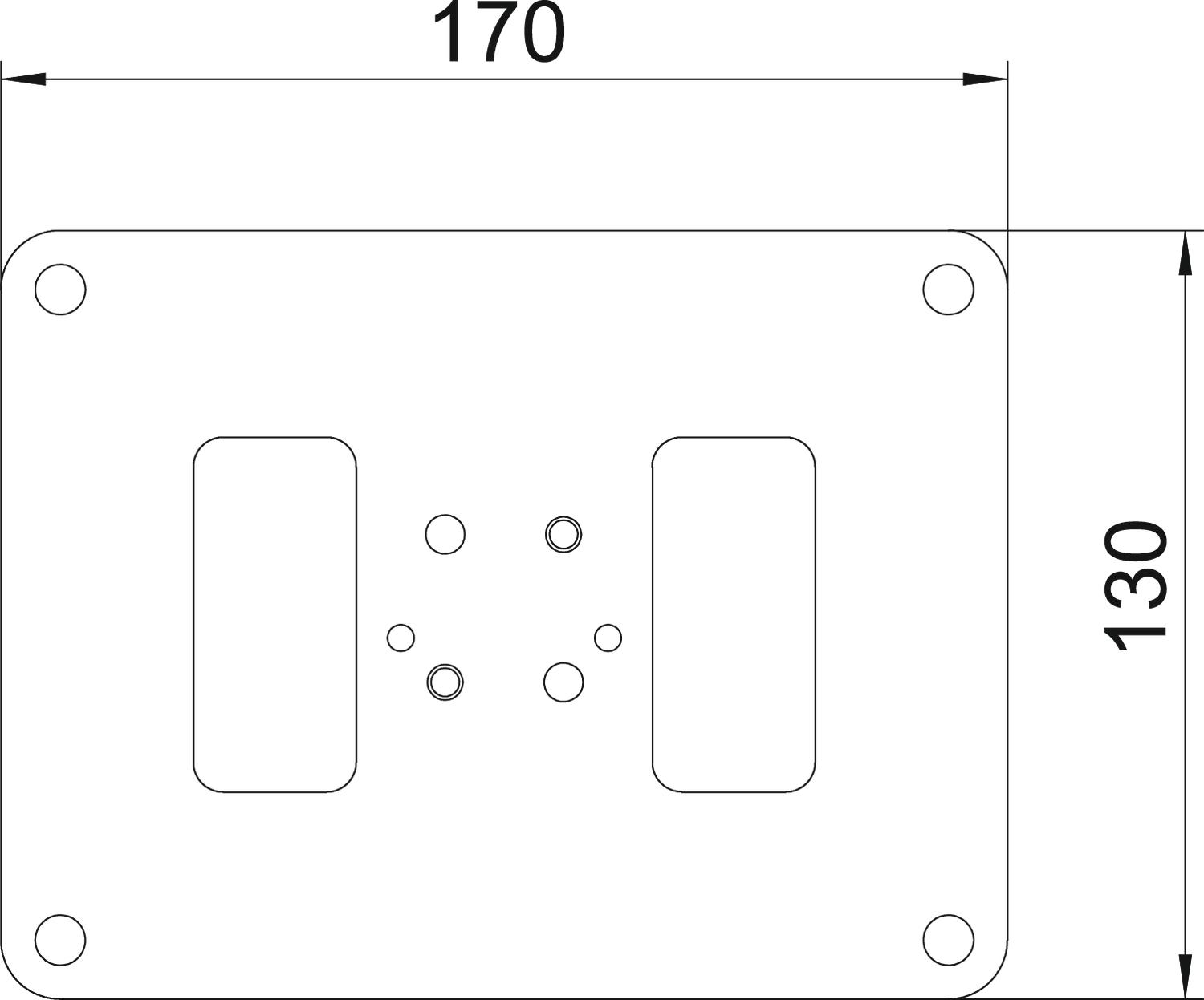 Tuotteen kuvausLattiakiinnike näkyvällä 30 mm:n reunalla ja 4 kiinnitysreiällä Ø 8,5 mm. Lattiakiinnike sopii pistorasiapylväiden tyyppi ISS70110 asennukseen.