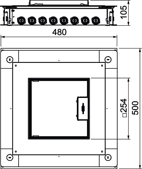 Asennussyvyys 105 mm Johtoaukon malli Kääntyvä kaapelikansi Koko 500x483x167 Kotelointiluokka (IP) käytetyssä tilassa IP20 Kotelointiluokka (IP) suljetussa tilassa IP40 Lattiapinnoitteen paksuus 20 mm Säätöalue maks. 160 mm Säätöalue min. 80 mm Suojaustaso IK-koodi IK10 - Kaikki tyypit