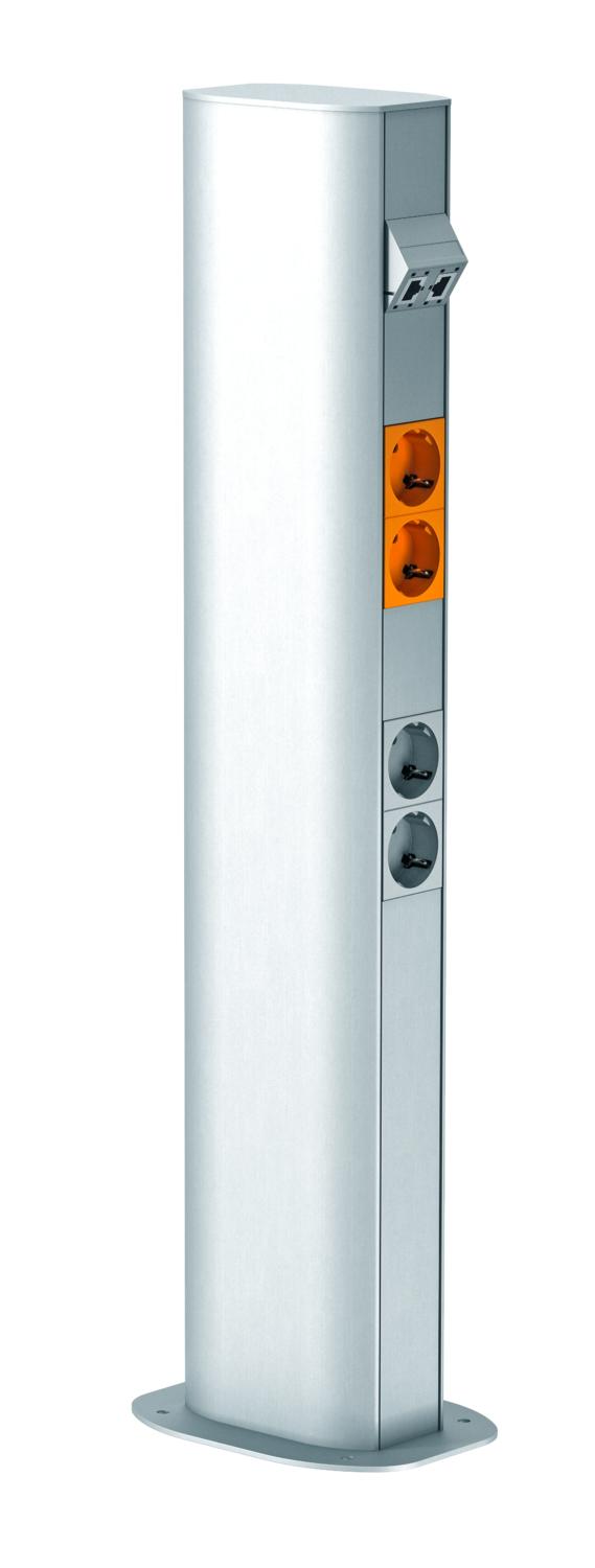 Tämän pistorasiapylväs on erittäin kapea ovaali alumiiniprofiili, jonka molemmilla ovaaleilla puolilla on johtokanavasarjan Rapid 45 kansi. 45 mm kansiaukko soveltuu Modul 45® -kytkimien ja pistorasioiden suoraan kiinnitykseen. Asennustila riittää 2 x 14 Modul 45® -kalusteelle. Modul 45connect® -sarjan käyttö tai kaapeloinnit, jotka vaativat enemmän tilaa, asennettavien kalusteiden määrä vähenee. Väliseinän tyyppi 2371/40 (6023096) on mahdollista.