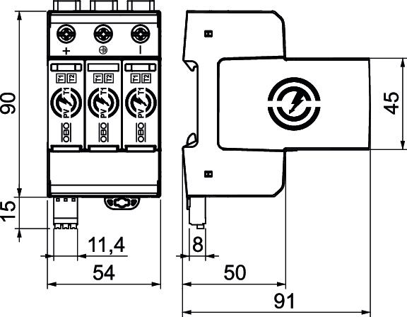 Tuotteen kuvausCombination arrester, type 1+2, for PV systems