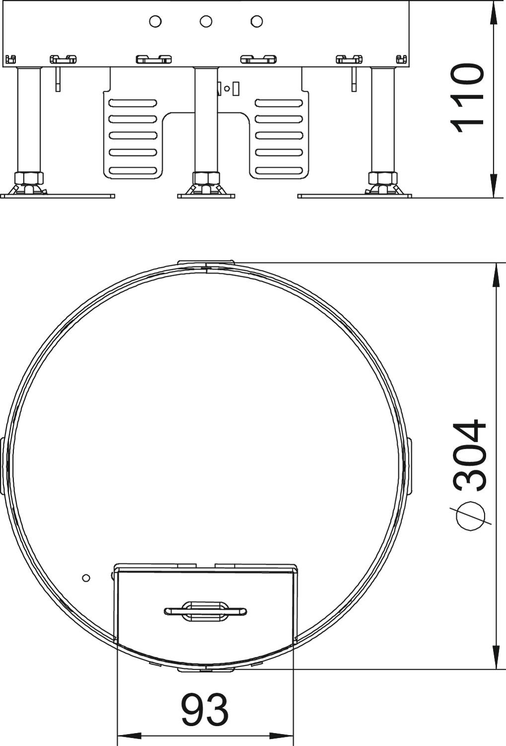 Tuotteen kuvausSäädettävä lattiarasia, nimelliskoko R9, johtoaukolla, kalusteiden asennukseen kuivapuhdistettaviin lattioihin sisätiloissa.