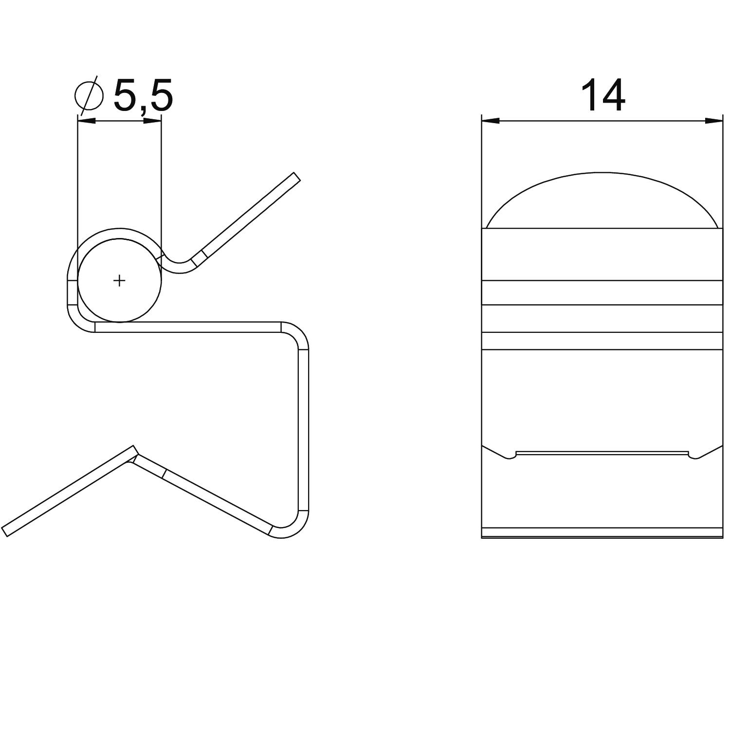 Dimension W 14 mm Kiinnityskappale, säädettävä ei Kiinnitystapa kiinnitys Koko 7,5-12mm Korkeus 21 mm Laipan paksuus F maks. 12 mm Laipan paksuus F min. 7,5 mm Liitäntätapa/-rakenneosa Asennusputki/kaapeli Materiaali teräs Pinta Sinkkikerros Pituus 18 mm Pohjamitta 14 mm Putken/kaapelin halkaisija maks. 5 mm Putken/kaapelin halkaisija min. 4 mm Saranoitu ei Väri sinkki - Kaikki tyypit