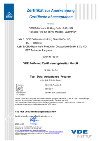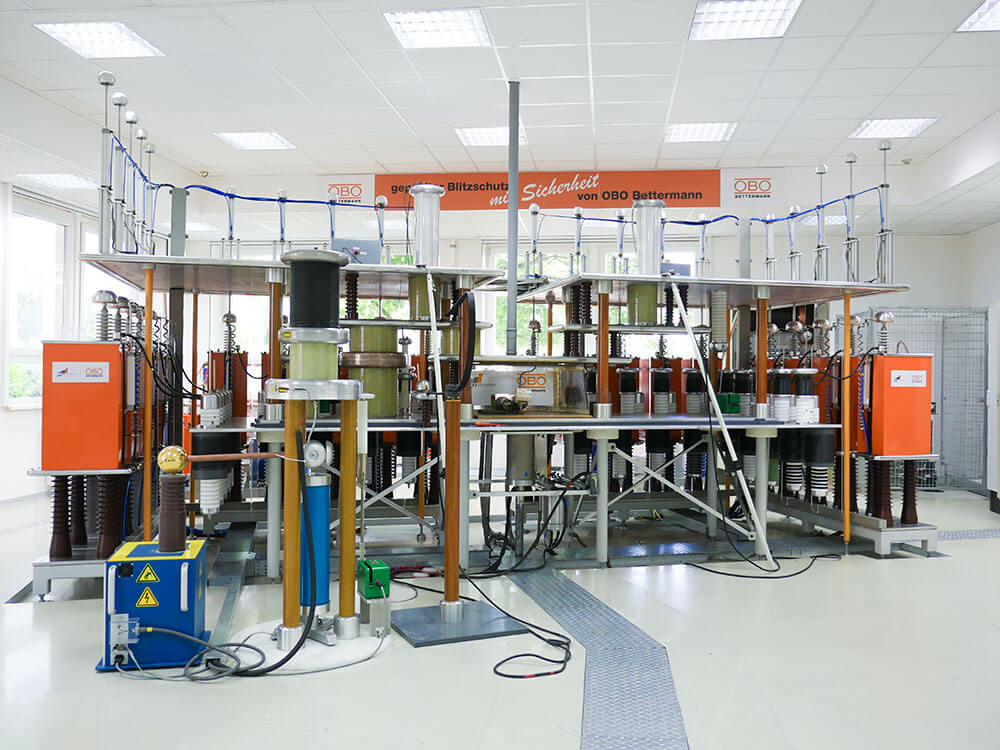 OBO-tuotteet ovat korkealaatuisia. Sen varmistamiseksi käytämme laajojen ulkoisten testauksien lisäksi yrityksen omaa BET-testauskeskusta. Siellä testataan OBO-tuotteiden laatu, kuormitettavuus ja rakenteellinen lujuus laaja-alaisissa kokeissa ja testeissä. Asiantuntijamme testaavat siellä muun muassa salamasuojauksen rakenneosat, salamasuojausrakenteet ja ylijännitesuojalaitteet. Siellä tehdään myös salamoita koskevia tutkimuksia tieteellisestä näkökulmasta.
