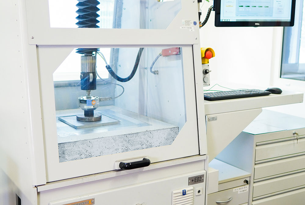 Testeissä käytetään tuotteen ja standardin asianomaisen alaluvun mukaisesti erilaisia muotoja ja eri kokoisia pinta-aloja. Testauslaitteisto tallentaa tällöin todellisen kuormituksen sekä järjestelmän ja sen osien muodonmuutoksen. Testauslaitteistossa on sisäinen 0,7 m x 0,7 m testialue ja se voi tuottaa jopa 50 kN kuormitusvoiman.